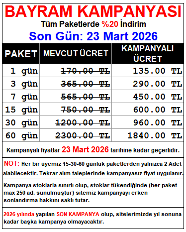 Lütfen ödeme gönderdikten sonra ÖDEME BİLDİRİMİ yapınız.