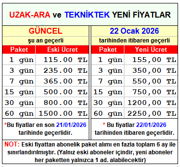 Eski fiyatlar 22 Ocak 2026 tarihine kadar geçerlidir.